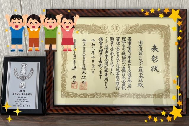 「優秀安全運転事業所」表彰の「銀賞」を贈呈いただきました😍✨